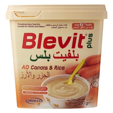 - Laboratories Ordesa has an exclusive manufacturing system where Blevit plus AD Carrots and Rice is adapted to the digestive maturation of the babies, allowing them to absorb better the nutrients.