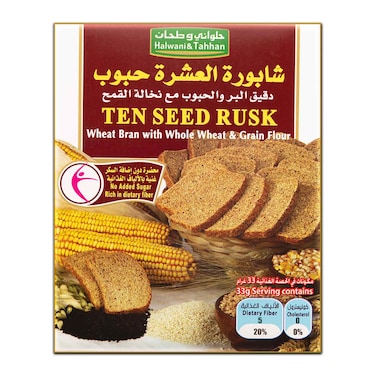 Halwani & tahhan ten seed rusk whaet barn with whole wheat & grain flour 300 g (no added sugar)