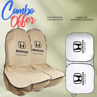 Combo Offer - Buy 2 Pcs HONDA Car Seat Cover, Dust Dirt Protection Cover + HONDA Car Sun Shade UV Rays And Heat Protector Sun Visor