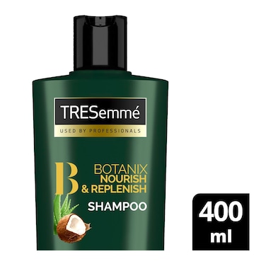- Infused with hair-quenching coconut milk and aloe vera, the TRESemmé Botanique Nourish & Replenish System revitalises hair without nasty parabens, dyes, or silicones. When your hair needs nourishment, natural ingredients are the best place to look because they replenish your hair without the use of nasty chemicals and colourants. Free from parabens, dyes, and silicones, and enriched with our botanical blend of coconut milk and aloe vera, our professional-quality formula simultaneously cleanses and quenches each time you lather up for beautifully soft, healthy-looking hair. This indulgent fragrance captures the natural essence of green fig milk and creamy coconut blended with precious sandalwood and white musk, whilst waterlily and a hint of plum add freshness. Step 1: apply TRESemmé Botanique Nourish & Replenish Shampoo to wet hair, gently massaging the scalp and roots with fingertips to work into a lather. Step 2: lightly squeeze the aloe vera shampoo from roots to ends, and rinse thoroughly. Step 3: follow with TRESemmé Botanique Nourish & Replenish Conditioner, and top off with your favourite TRESemmé hair styling products for women. TRESemmé delivers professional-quality and trend-inspired products so that you can get the power of gorgeous hair everyday. Like our tips and haircare products? Leave a review on our website and eCommerce platform.