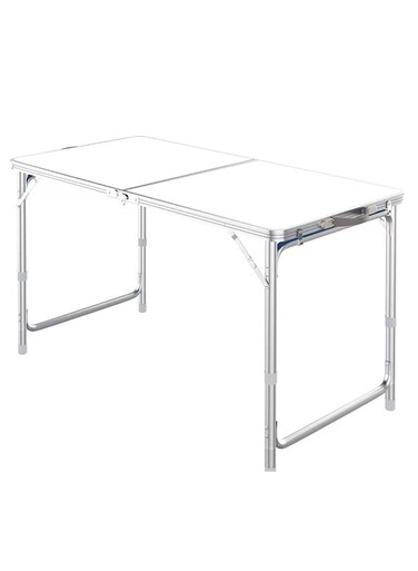 Sky-Touch Folding Trestle Outdoor Camping Table, 120x60x70cm, Aluminum Alloy Outdoor Folding Picnic Table, Lightweight Trestle Outdoor Camping For Bbq Party, Folds In Half With Carry Handle, White