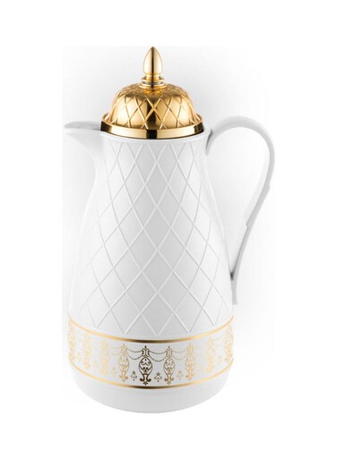Plumero Flask With Golden Lid, White/Gold, 1L
