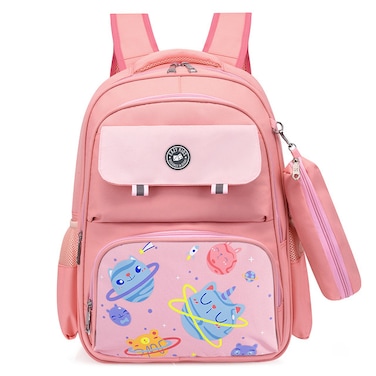 Eazy Kids Unicorn Planet school bag by SAMBOX. The Cat Planet school bag is stylish and yet robust school bag. The backpack provides a durable design and high quality finish. This backpack comes with a pencil case & multiple storage compartments to ensure your kid's things are perfectly organized. The beautiful design of the two front pockets, one with zipper and another with Velcro tape opening for easy access. Zippers are solid and sturdy; they don't easily break off even with constant use. Pullers have a firm grip so sliding the zipper to open or close is easy for your kid. The backpack is made of durable water - resistant material which is very easy to clean and keep books and essentials safe from getting wet in rain. This backpack comes in Lovely colors and designs, it's a great gift for back to school.