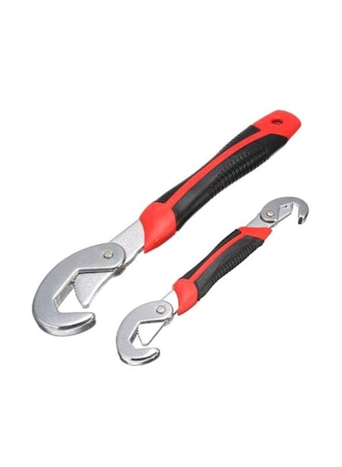 Generic 2-Piece Adjustable Snap And Grip Wrench Set -Black/Red/Silver