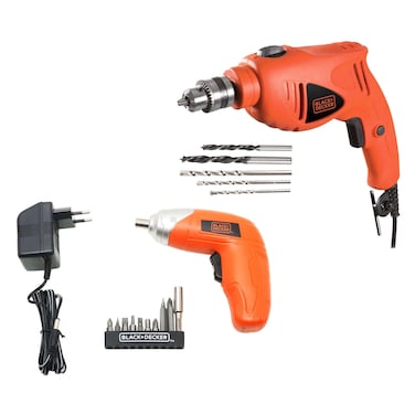 Black+Decker HD5010A5-B5 Hammer Drill With Bits 500W + Screwdriver With Bits Set 3.6V