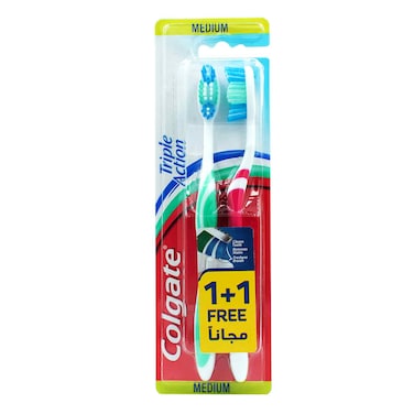 Colgate Triple Action Medium Toothbrush, multicolour - 2pieces