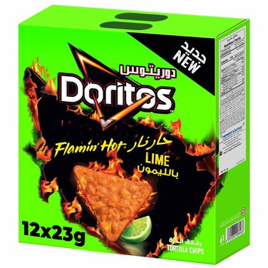 Doritos Flamin Hot Lime Flavored Tortilla Chips 23g Pack of 12