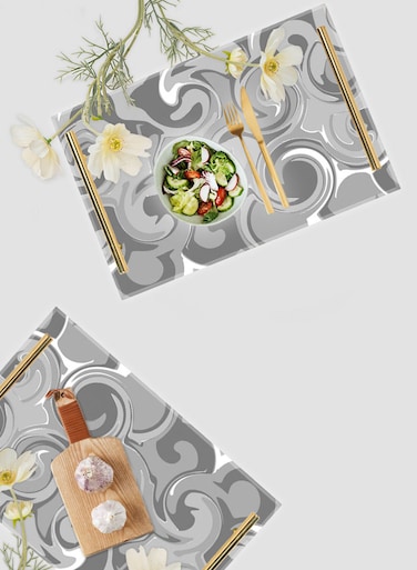 - <p><li>This fashionable and functional tray can be used as a serving tray for food or drinks. It can also be used as an ornament for the coffee corner, kitchen, tables, living room, or bedroom, adding a sense of quality.<p><li>This serving tray is made of high-quality acrylic. The design is permanently printed on the acrylic for a more realistic effect and will not chip, peel, or fade.<p><li>The handles are made of rustproof metal. The shape is simple and atmospheric, with a beautiful gold color that provides a pleasant visual experience.<p><li>The bottom of this decoration tray is equipped with a non-slip pad to prevent the tray from slipping or falling and to protect your furniture from being scratched.<p><li>It will not easily deform or fade. This tray is easy to maintain and can be wiped directly with a damp cloth or paper towel. It is hard, durable, and easy to clean.
