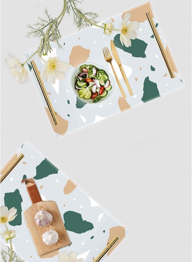 Lowha Decorative Acrylic Serving Tray With Gold Metal Handles And Terrazzo Pattern Design 20x30 cm