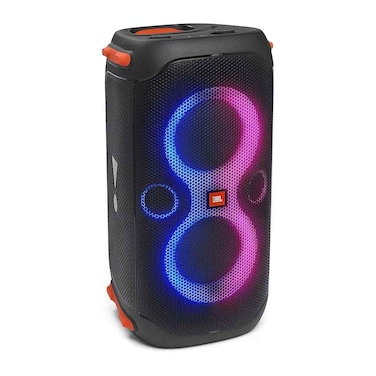The PartyBox 110. Take the PartyBox wherever you go with the splash proof design and plug in a guitar and mic for the ultimate immersive experience. With Bass Boost and loud, powerful JBL Original Pro Sound, your friends won't just hear the music, they'll feel it as 12 hours of playtime keeps the party rocking all day or night.
