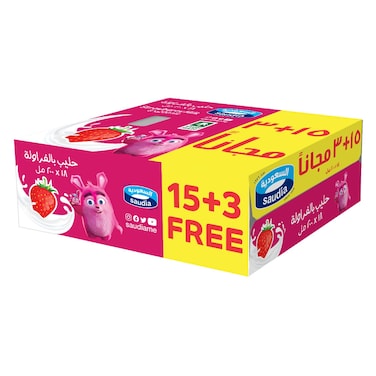 Saudia Strawberry Flavored Milk 200ml × 15 + 3 Free