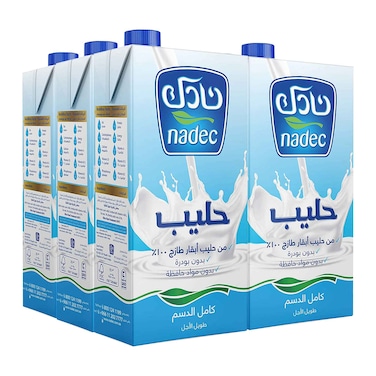 Nadec Long Life Plain Milk Full Fat 1L × 6