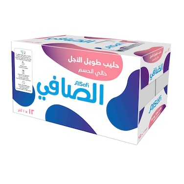 Alsafi Long Life Skimmed Milk 1L times 12 Pieces