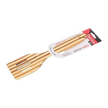 Natural antibacterial bamboo is naturally non porous and resistant to bacteria. It's also very easy to clean unlike other wooden turners, the delcasa bamboo turner doesn't absorb liquids easily and won't soak in food odours or stains making it less prone to cracking, warping and smelling. Non toxic and suitable for use with food. Quality material made from top graded bamboo, slotted turner which is stylish, built to last and easy to grip.
