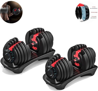 Generic Quickly Adjustable Dumbbells, Intelligent Pure Steel Dumbbell Weight, Men And Women Fitness Equipment,For Home Gym Exercise (Color : Black+Red B*2, Size : 24Kg)