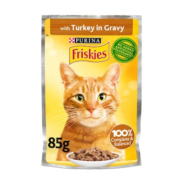 Friskies turkey chunks in gravy wet cat food pouch 85g