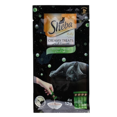 - Whether used as a reward or a special treat, Sheba Melty Creamy Treats Chicken Cat Food will surely make your cat purr with delight.