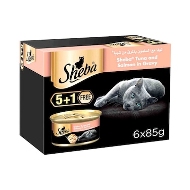 Sheba Flaked Tuna Topped With Salmon Cat Food, 5 Plus 1 Pack (85G X 6 Cans)