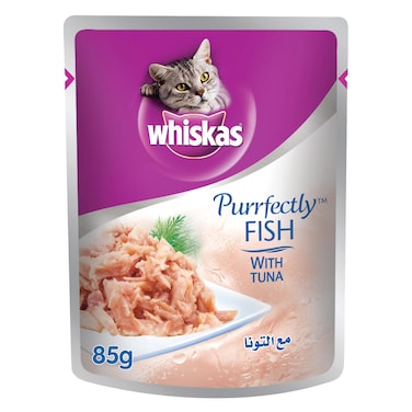 - <ul></li>CUTS OF REAL FISH: Your cat will find these different textures of real fish fun to munch on. The lack of dullness in the tuna texture with natural juices will help your cat's appetite and joy, so your cat can always come back wanting more Whiskas! </li></li> THE FLAVOR-LOCK: Thanks to the pouch model with the flavor lock, Purrfectly Fish helps you make well-measured servings quickly and easily, while sealing in freshness for your cat to enjoy every time. </li></li>REAL FEAST WITH CRUDE PROTEIN: Purrfectly Fish with Tuna is rich in crude protein to help your cat develop and maintain muscles, skin, fur, nails, tendons, ligaments, enzymes, hormones, and more so you can always brag about your cat being the best!</li></li>MAXIMUM MOISTURE & NATURAL JUICES: Cats love good moisture in their food! Purrfectly Fish with Tuna includes natural juices to provide the nutritional requirements for your cats, which are established by AAFCO.</li></li>VARIETY OF PURRFECTLY FLAVORS: We know you want to spoil your cat. They deserve to look forward to have delicious meals. Purrfectly Fish comes with a range of flavors like tuna, tuna & salmon, & chicken entree so your cat will always have options!</li><ul>