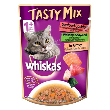 Whiskas Tasty Mix Seafood Cocktail Wakame Seaweed In Gravy Adult Cat Food 1+ Years 70g