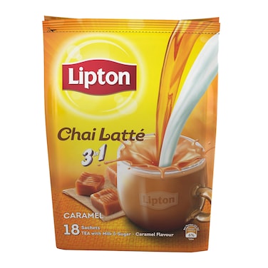 Lipton chai latte classic 3 in 1 tea with milk & sugar carame flavour 25.8 g x 18 sachets