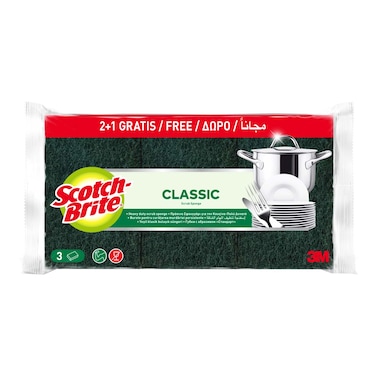 3M Scotch-Brite Classic Scrub Sponge 2 Pieces + 1 Piece Free Green/Yellow