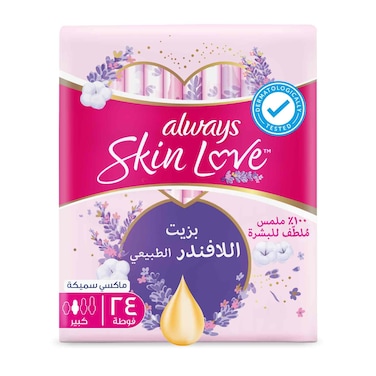 Always Skin Love Pads with Natural Lavender Oil, 24 Large Thick Pads