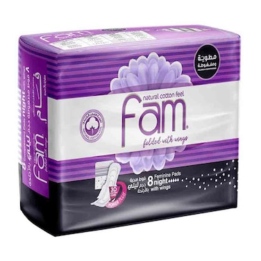 Fam Maxi Sanitary Pad Folded With Wings Night 8 Pads