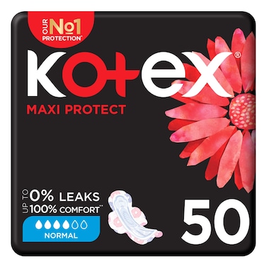 Kotex Maxi Protect Thick Pads, Normal Size Sanitary Pads with Wings, 50 Sanitary Pads