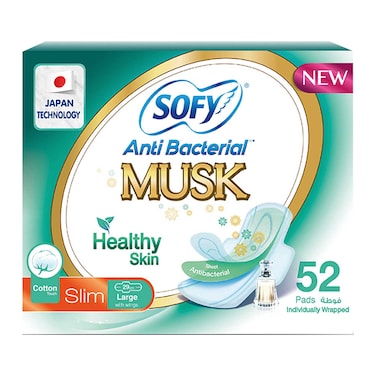 Sofy Anti Bacterial Musk Cotton Slim Large with Wings 52 Pads