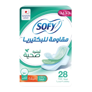 Sofy Anti-Bacterial Original Slim Sanitary Pads With Wings Large White 28 Pads