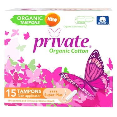 Private Non Applicator Organic Super Plus Tampons 15 Pieces