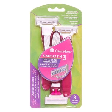 Carrefour Smooth 3 Triple Blade Disposable Razors Multicolour 3 count