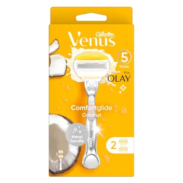 Gillet Venus Plus Olay - Comfortglide Coconut Razor, 5 Blades, With Metal Handle & Two Heads