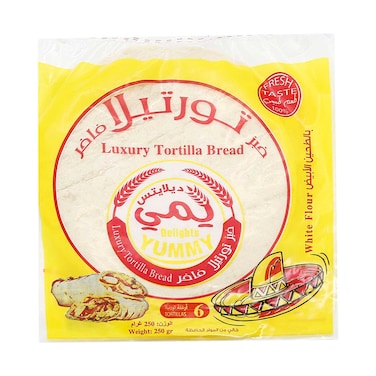 Yummy White Flour Tortilla Wraps Medium, 6 Pieces 250g